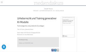 Dornis, T. W., & Stober, S. (2024). Urheberrecht und Training generativer KI-Modelle. Nomos, 1. Auflage 2024, 217 Seiten.